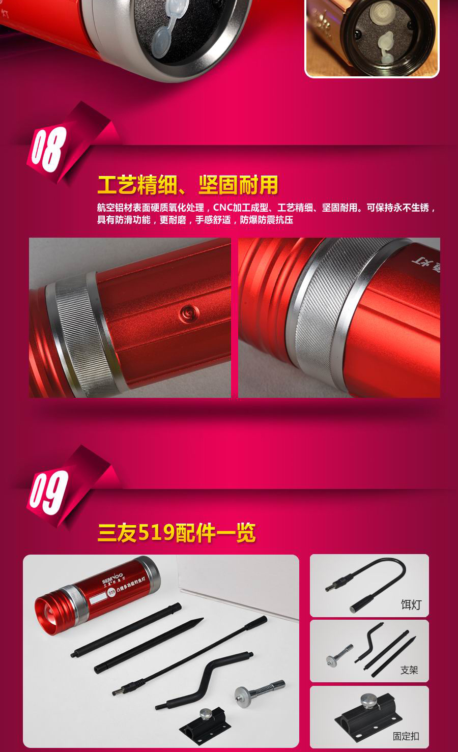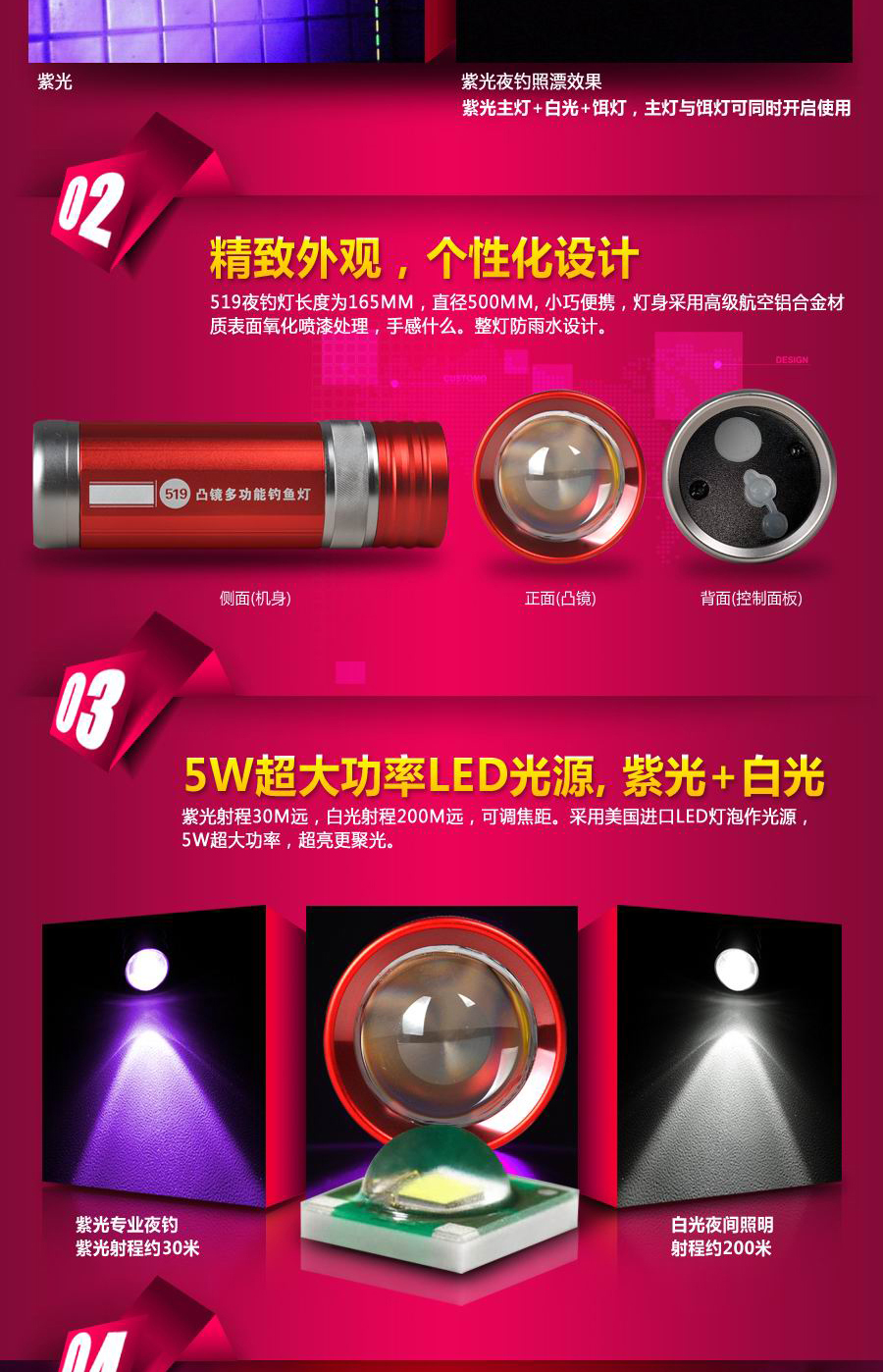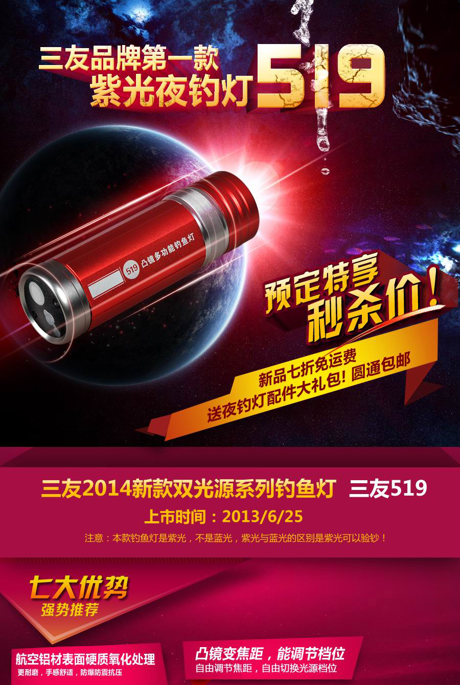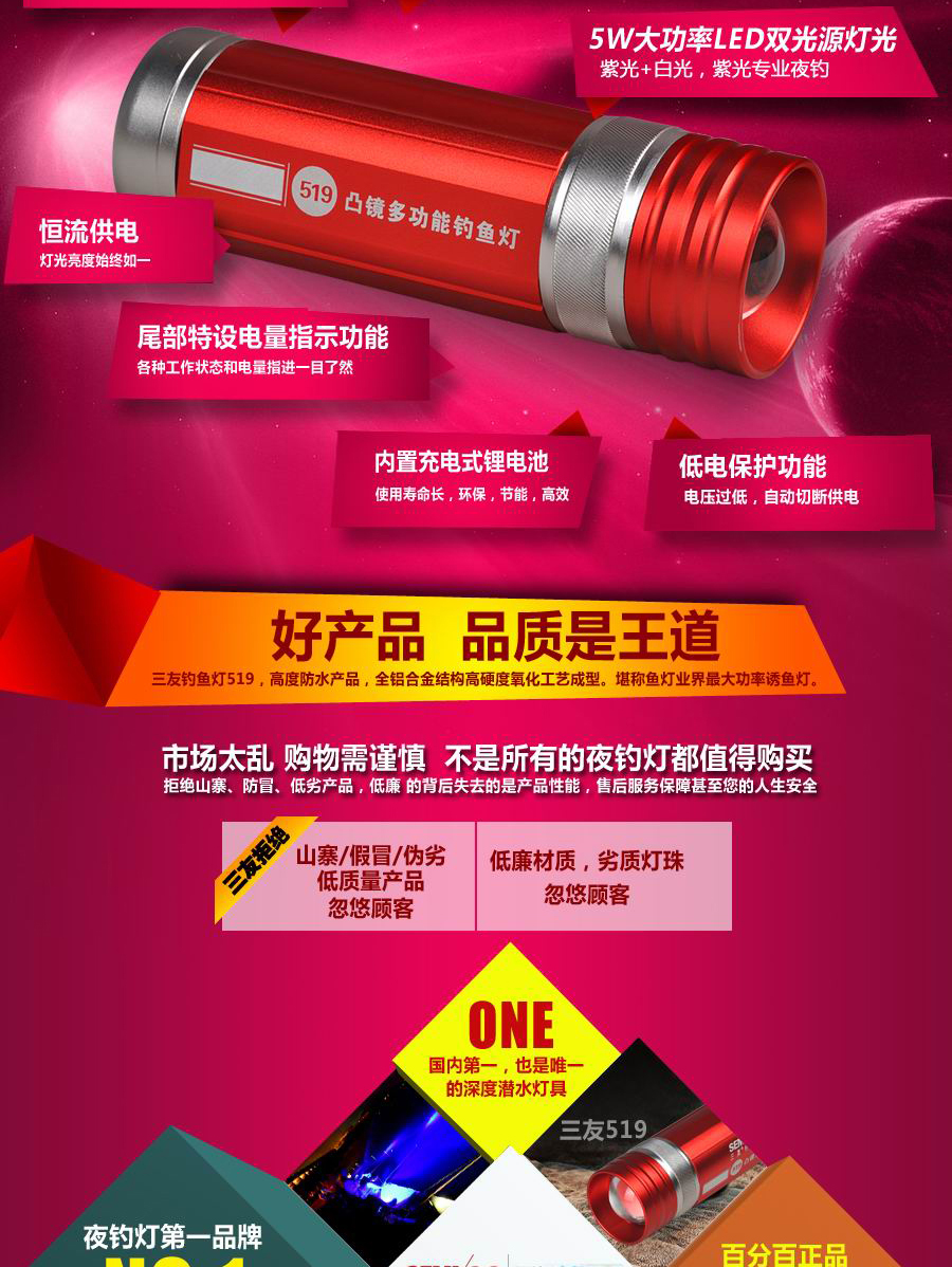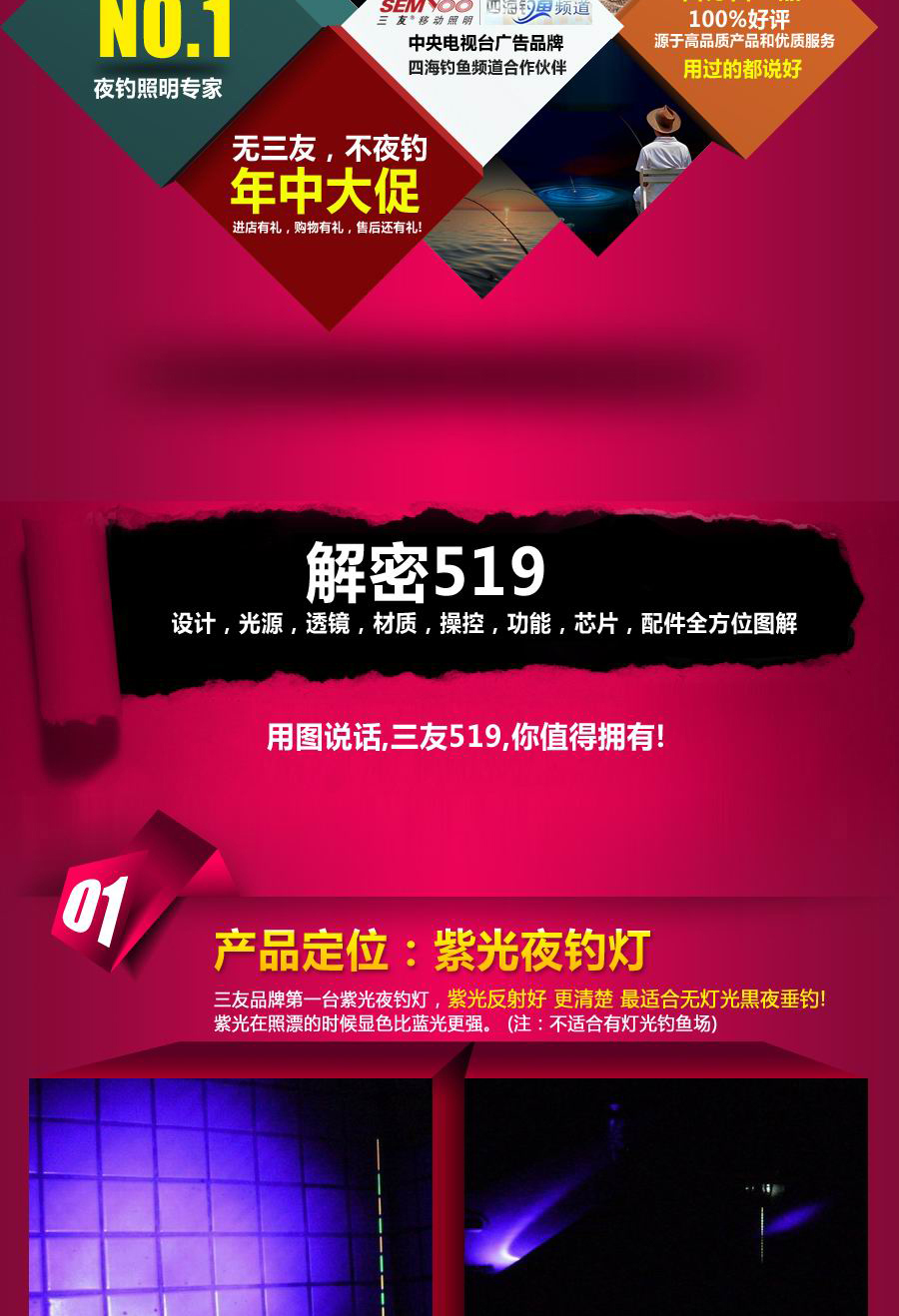 三友519品牌紫光夜釣燈詳情頁設計