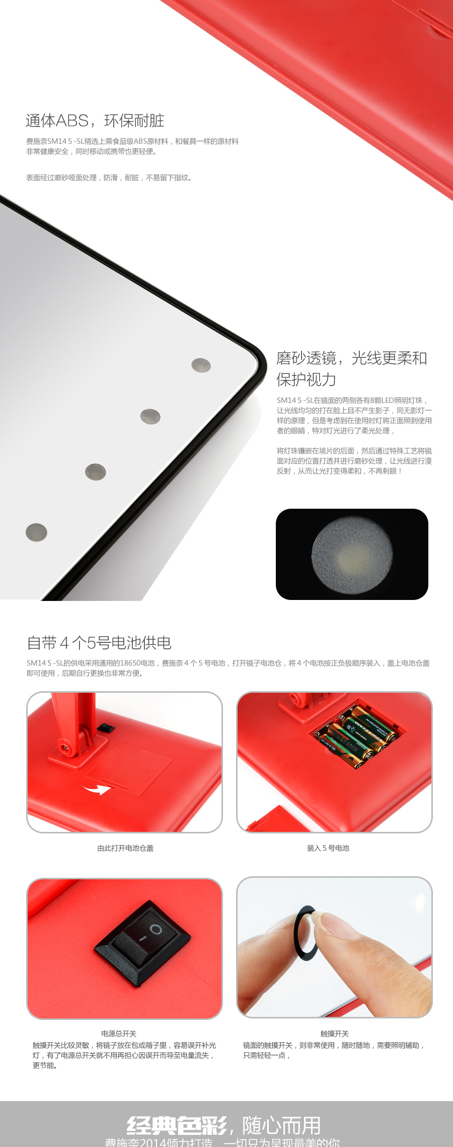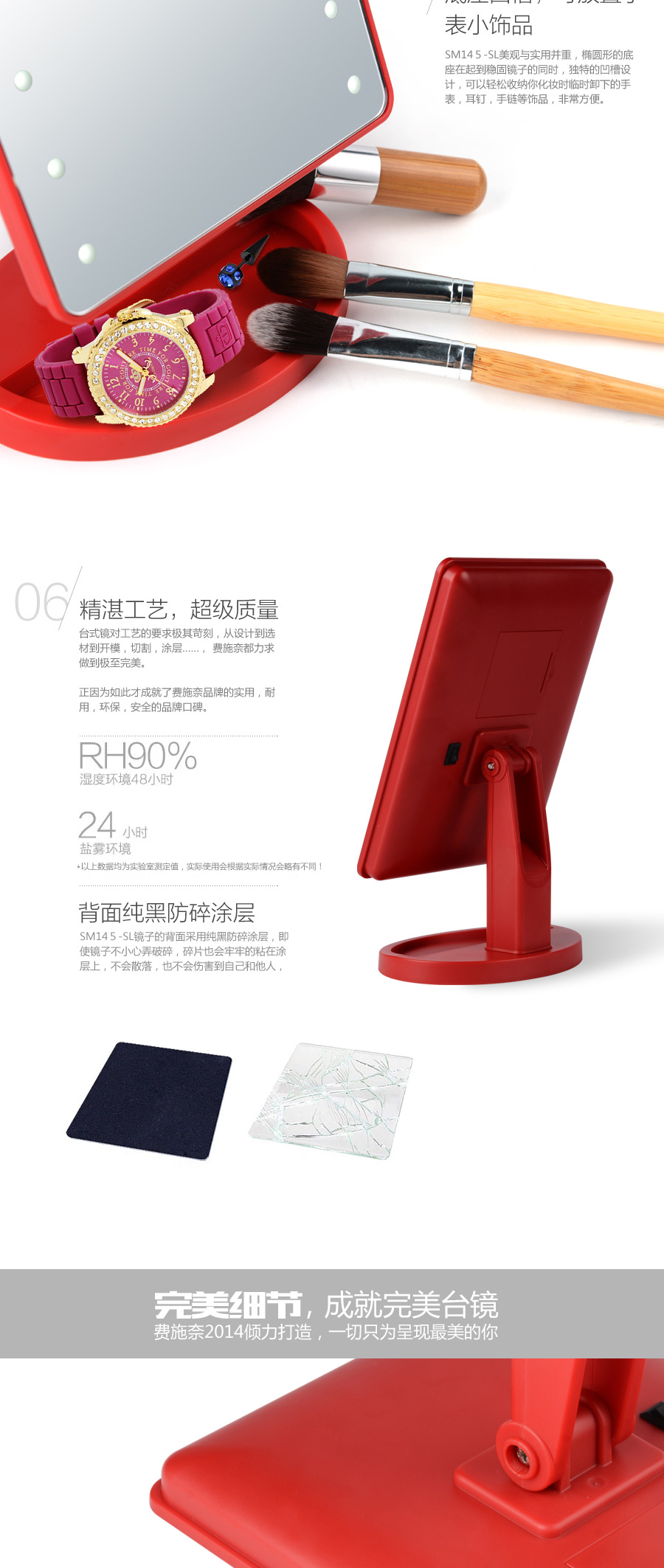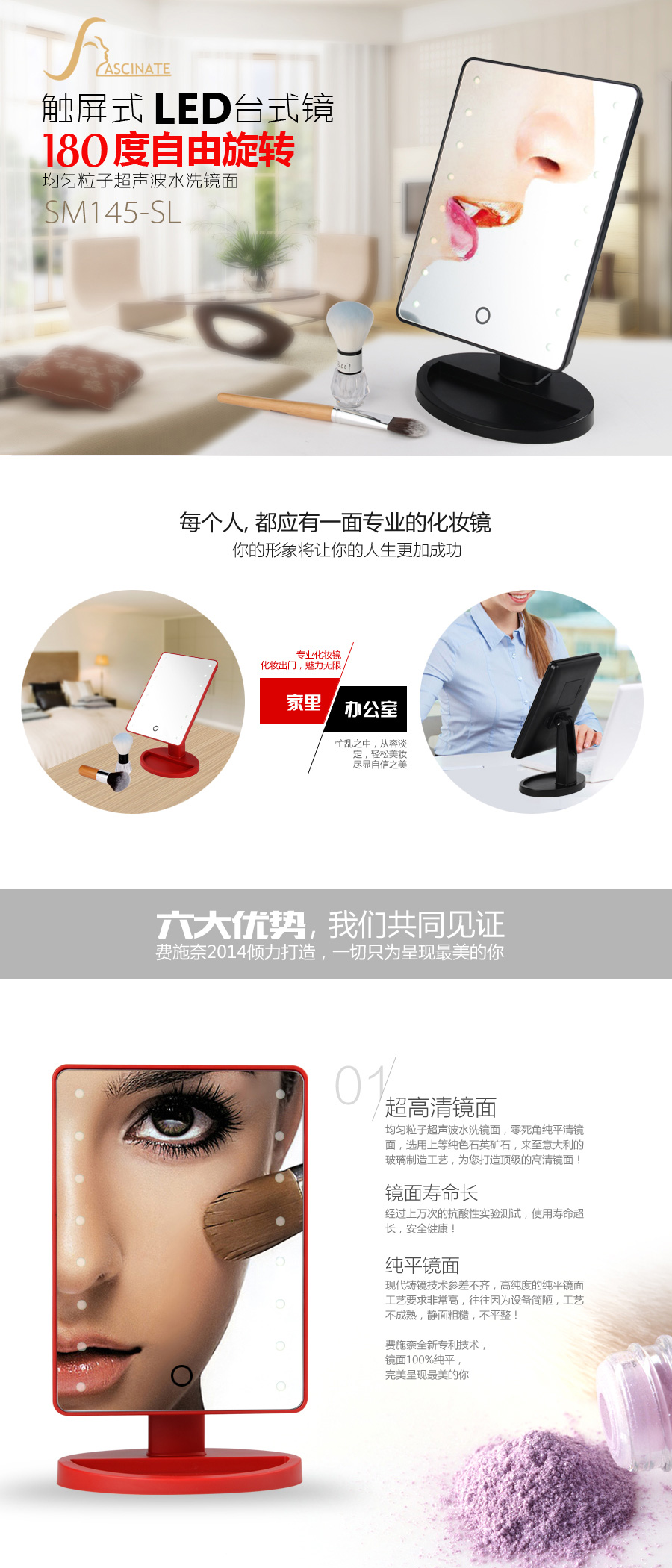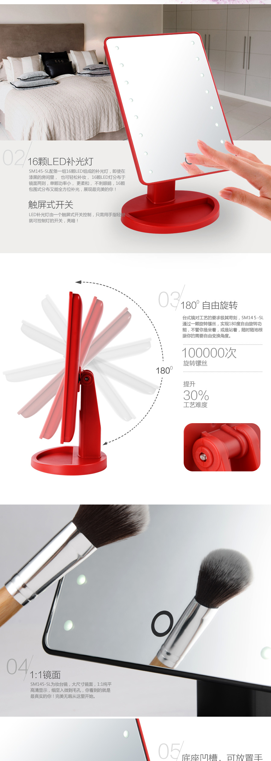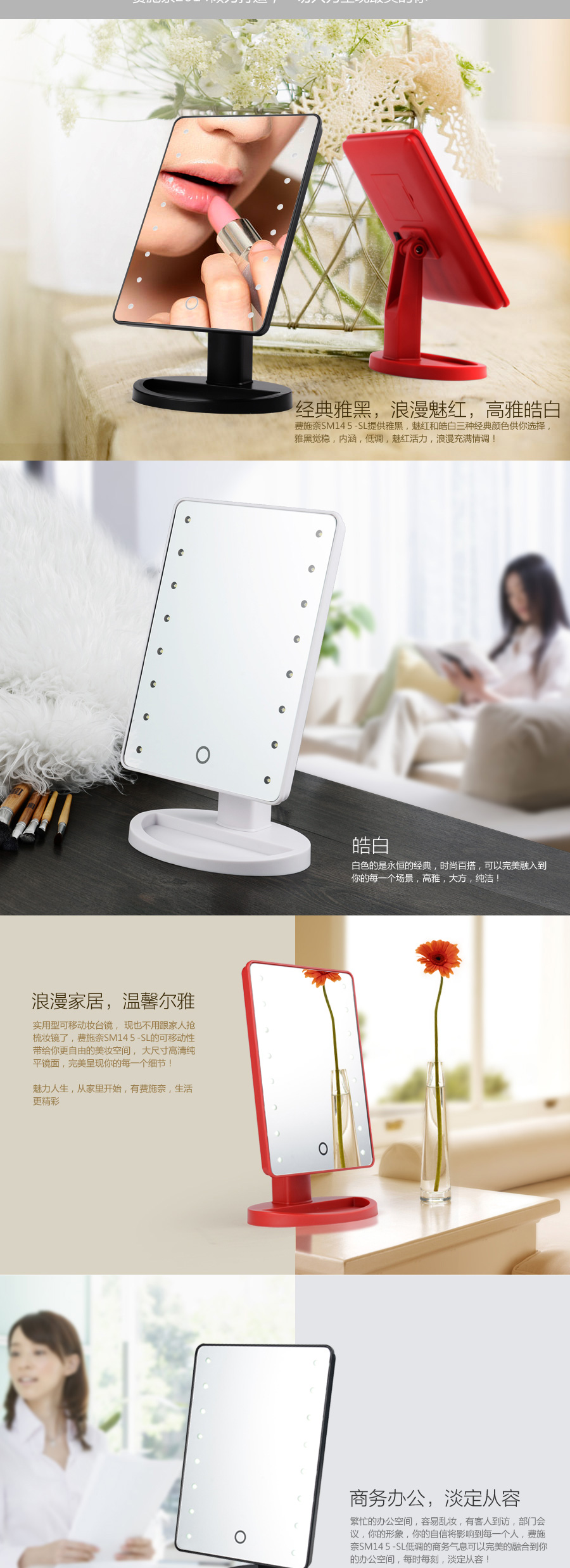 觸屏式LED臺式鏡詳情頁設計 180度自由旋轉