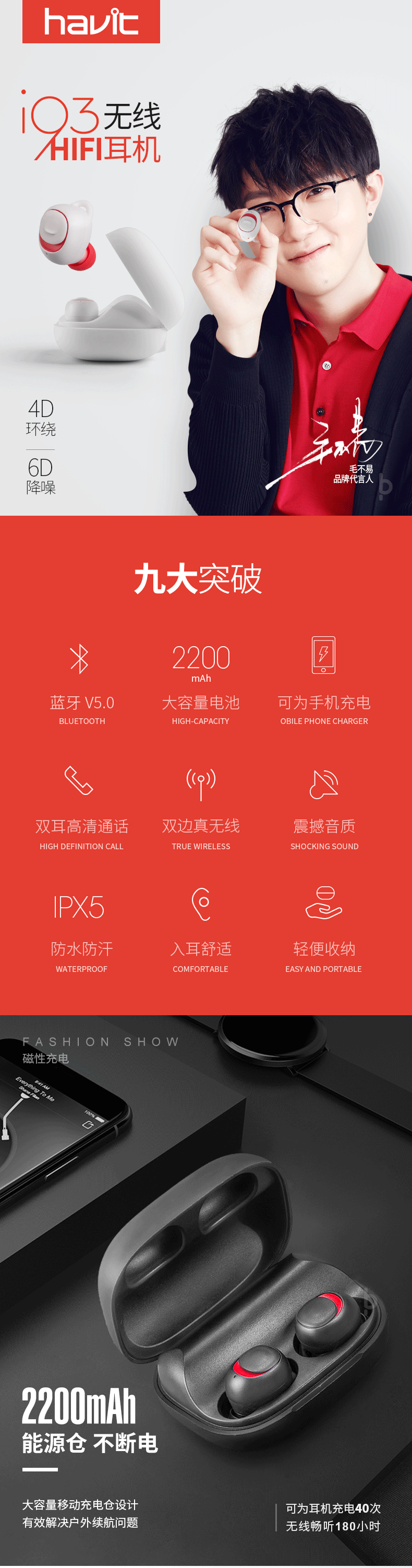 Havit藍牙耳機詳情頁設計