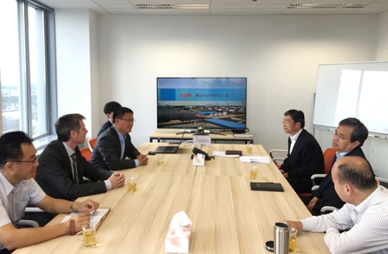 圖為國際貿(mào)易部部長張文在歐洲分公司會議室同宋市長一行座談