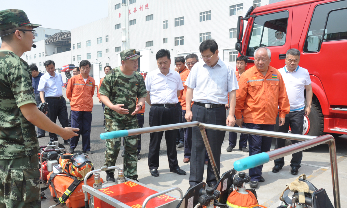 調(diào)研組領(lǐng)導先后參觀了園區(qū)生產(chǎn)裝置、重型裝備制作廠房、應(yīng)急救援中心,聽取了集團在化工生產(chǎn)運行、裝備制造、應(yīng)急救援隊伍建設(shè)方面的情況介紹,現(xiàn)場查看了消防救援裝備、遠程平臺的配置管控情況,并對渦噴救援車噴水演練、隊員個人綜合體能訓練情況進行了現(xiàn)場觀摩。
