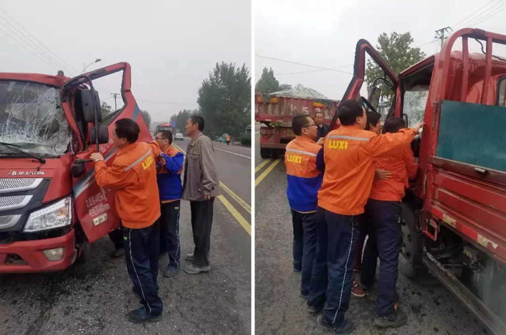 10月10日8時(shí)40分,在距黃河大橋500米處發(fā)生交通事故:一輛臨沂牌照的小貨車與聊城半掛追尾,貨車司機(jī)被困駕駛室內(nèi),司機(jī)的女兒圍著駕駛室直跺腳,當(dāng)時(shí)的情況萬分緊急。魯西集團(tuán)平陰魯西裝備公司的龐汝金、王甲勝、侯斌、趙昊忠和司機(jī)于波駕車去集團(tuán)送貨途經(jīng)車禍現(xiàn)場,五名員工立即下車一邊救助傷員,一邊維護(hù)交通秩序,受到過路司機(jī)和交警的稱贊。