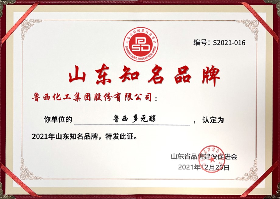 近日, 山東省品牌建設促進會在品牌年會上發(fā)布2021年度山東知名品牌認定名單,魯西集團“多元醇”產(chǎn)品榜上有名,榮獲“山東知名品牌”。